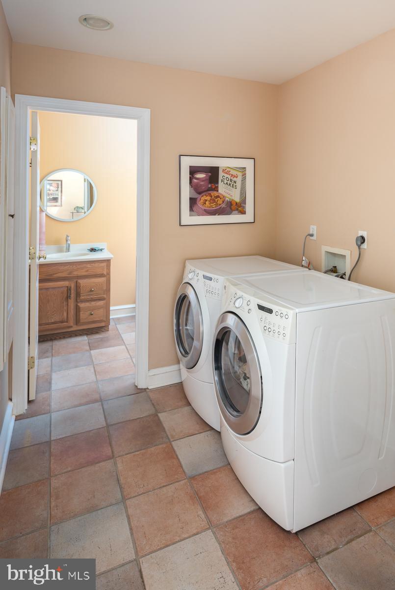 Step outside to the backyard sanctuary, featuring a flagstone patio perfect for al fresco dining, an inground salt water pool for endless summer enjoyment, and a large grassy area all enclosed within a fenced-in yard, providing the ideal setting for outdoor recreation and relaxation.