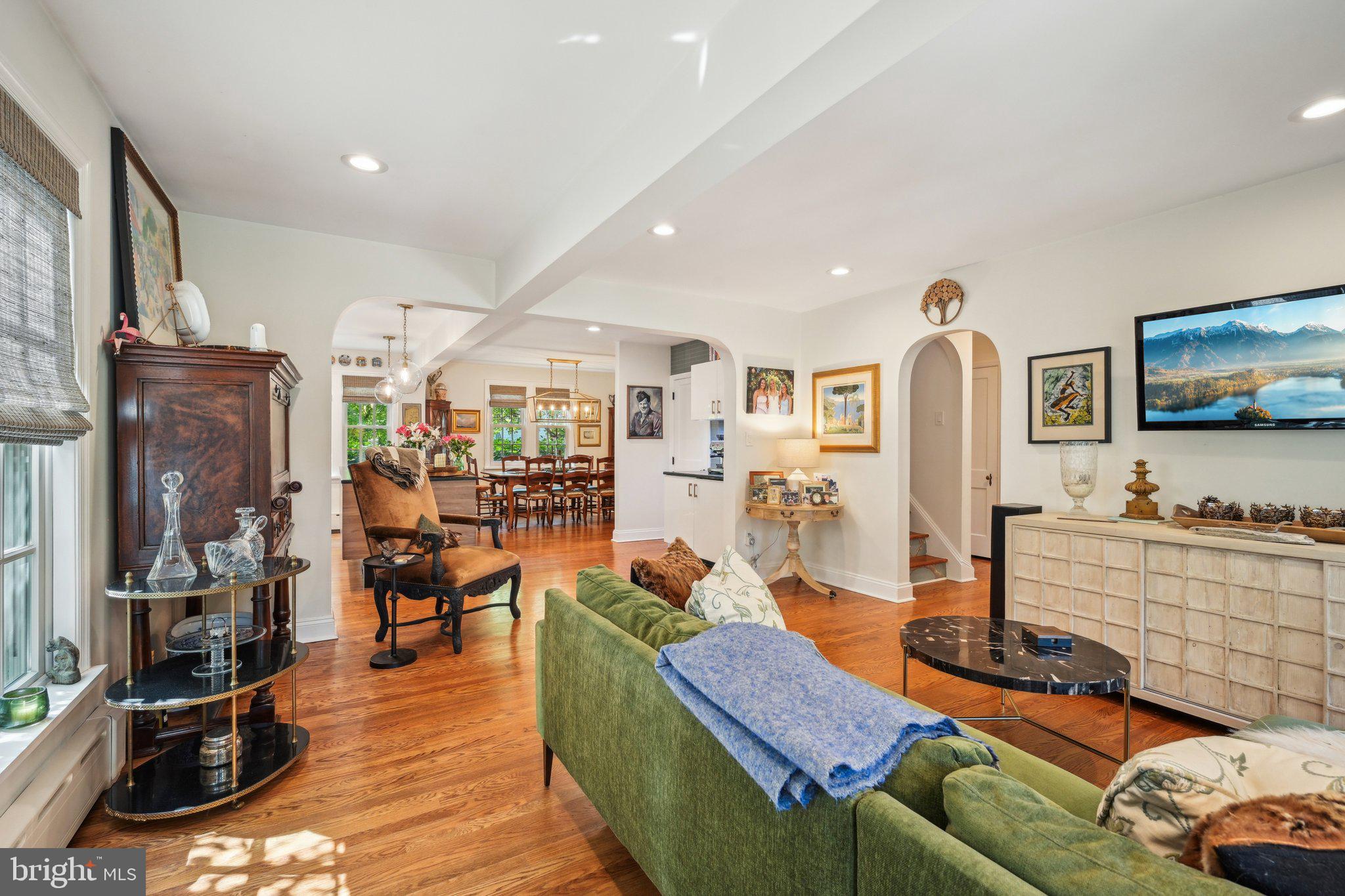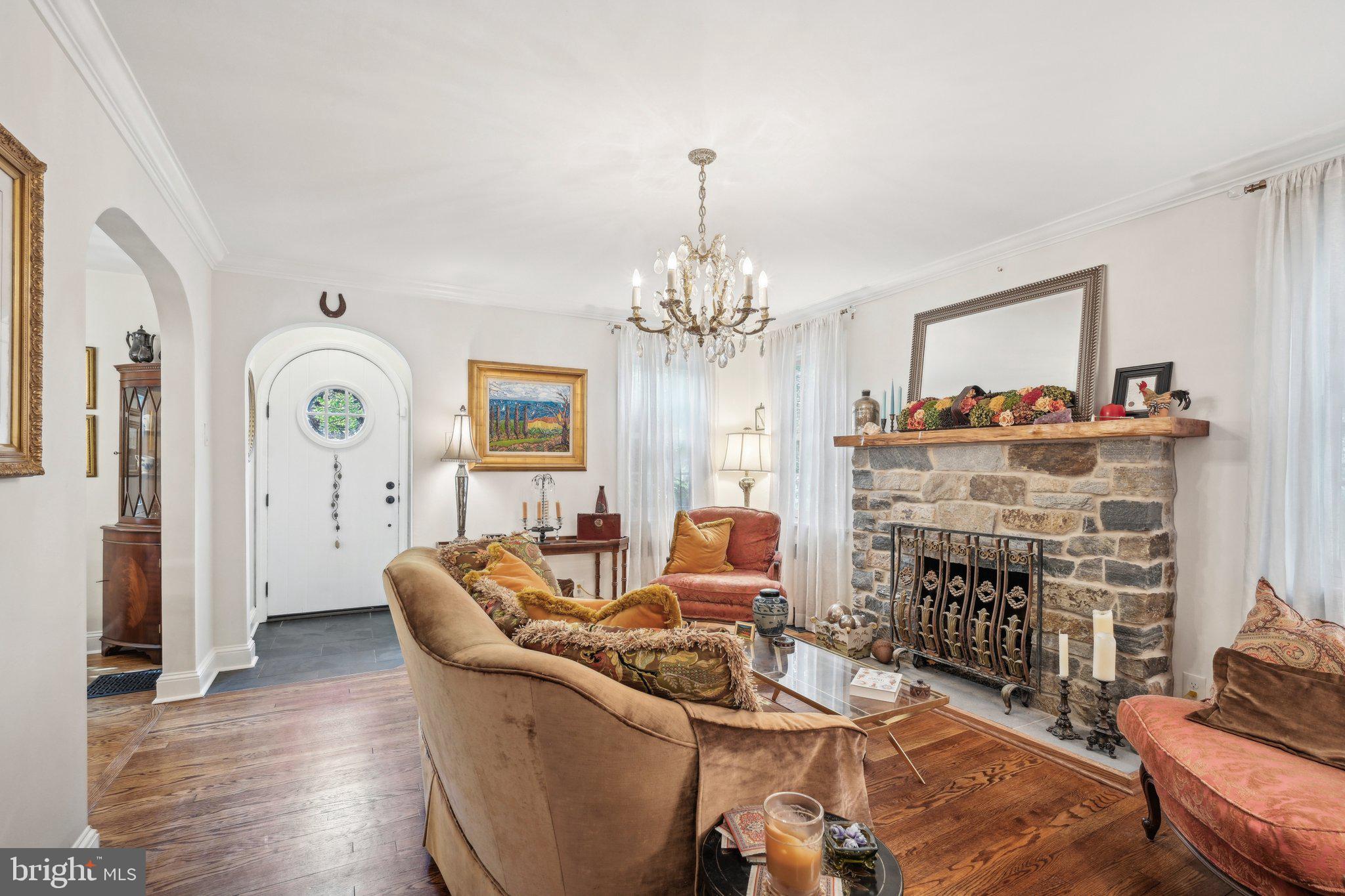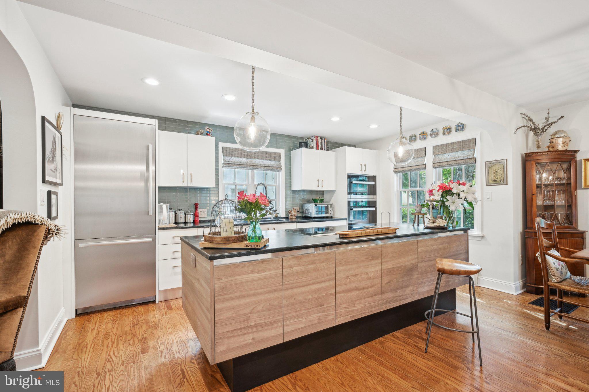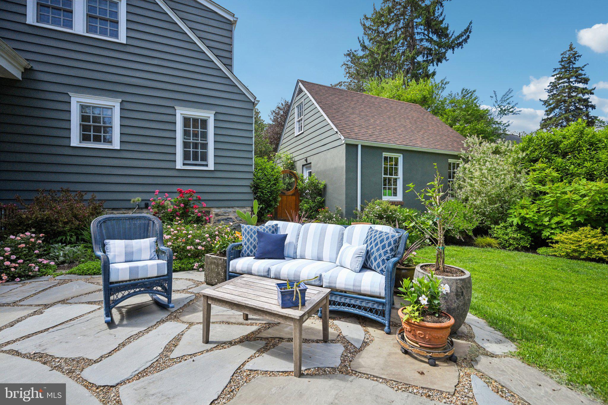 Welcome to this stunning, completely updated home, nestled on a spacious quarter-acre lot in the highly-desirable Beechwood neighborhood of Havertown. From 2019 to 2020 no detail was overlooked as the entire property underwent a thoughtful renovation, blending classic charm with modern convenience. The delightful exterior invites you in with mature well-tended plantings and lovely flower gardens. As you approach the arched front door by the newly redone landing and steps, come inside to discover a warm and inviting home with refinished hardwood floors and new Anderson wood windows throughout. The beautiful living room features a newly renovated gas fireplace with custom built mantel and new stone, creating a charming focal point. Across the center hall find a bright full dining room which flows into an absolute dream of a kitchen where you'll find soapstone countertops, a spacious island with beautifully designed storage, Wolf induction cooktop, built-in Bosch refrigerator and Miele convection and steam ovens. The kitchen, which also offers a convenient nook for coffee making and more, opens to the spacious family room, perfect for relaxing and entertaining. From here, you are beckoned outside through a slate-tiled alcove and French doors leading to a cozy covered deck, where you can walk out to the patio and back yard if desired. The first floor includes a sunny bedroom with ample well-designed closet space, offering flexibility for those looking for a first floor bedroom or home office. On this floor also find a completely renovated gorgeous tile hall bathroom with walk-in shower. Upstairs are redone hardwood floors, a second renovated tile bathroom, and 3 bedrooms. The main bedroom includes a new walk-in closet addition with a window. On the lower level, the finished basement has been completely redone including the staircase, providing additional living space and a nicely-sized half bath. On this level you'll also find the laundry room and easy access to the back yard through redone steps and a gate leading out. Once outside, you'll fall in love with the new flagstone patio, surrounded by garden beds, ample flat lawn space, and a skip laurel hedge and smart-looking newer fence providing privacy. The wooden shed offers convenient storage tucked away in a corner of the yard. Parking is no problem with the separate double garage which includes a second-story loft, offering additional storage and the potential for a creative space. The garage can be accessed through a side door from a landscaped breezeway with a splendid custom arched gate leading to the back yard. Additional upgrades include a new roof, new driveway and curb apron, completely redone HVAC and electric with a new electric panel, and new Smith and Noble custom window shades. This turn-key home, lovingly transformed by owners who planned to stay but are now moving to be closer to family, offers a comfortable, convenient, and stylish living experience in a vibrant neighborhood close to Linwood Park, Karakung Swim Club, schools, transit, restaurants and shopping. Don't miss this opportunity to see this beautiful home and call it your own!