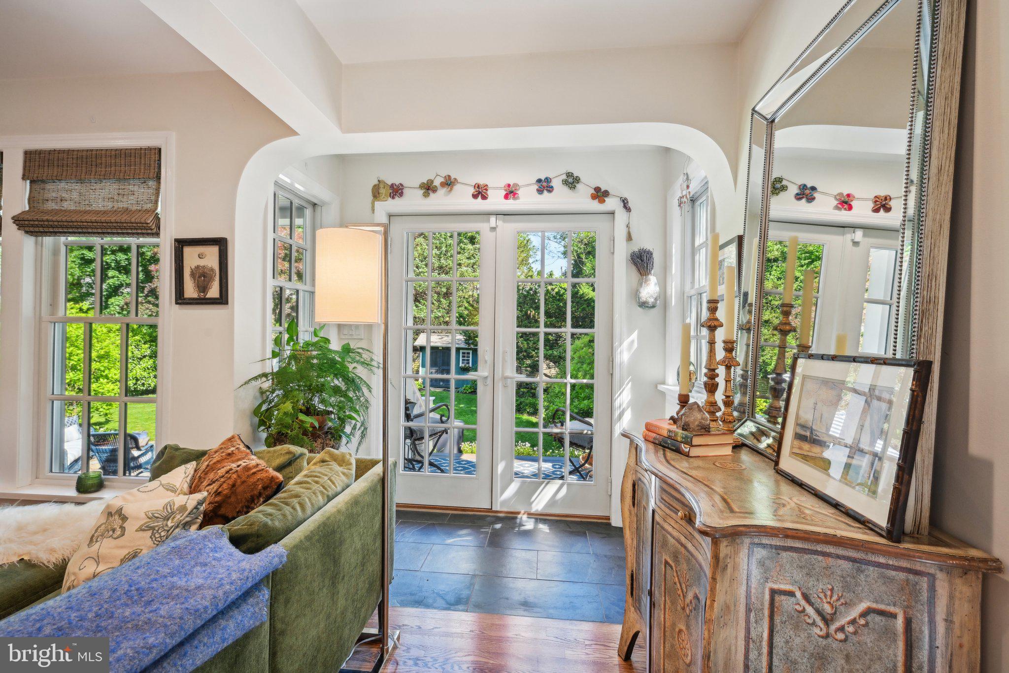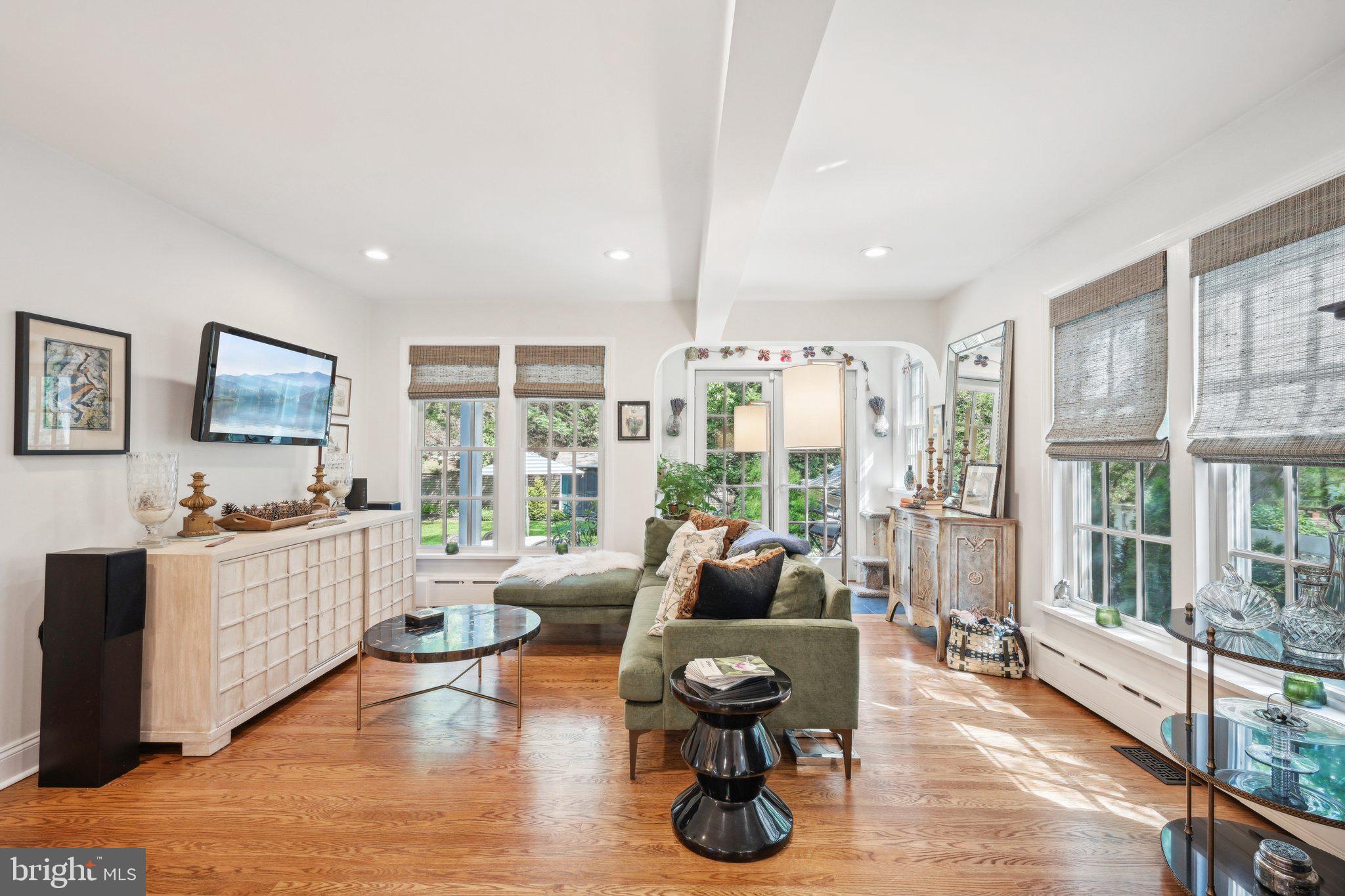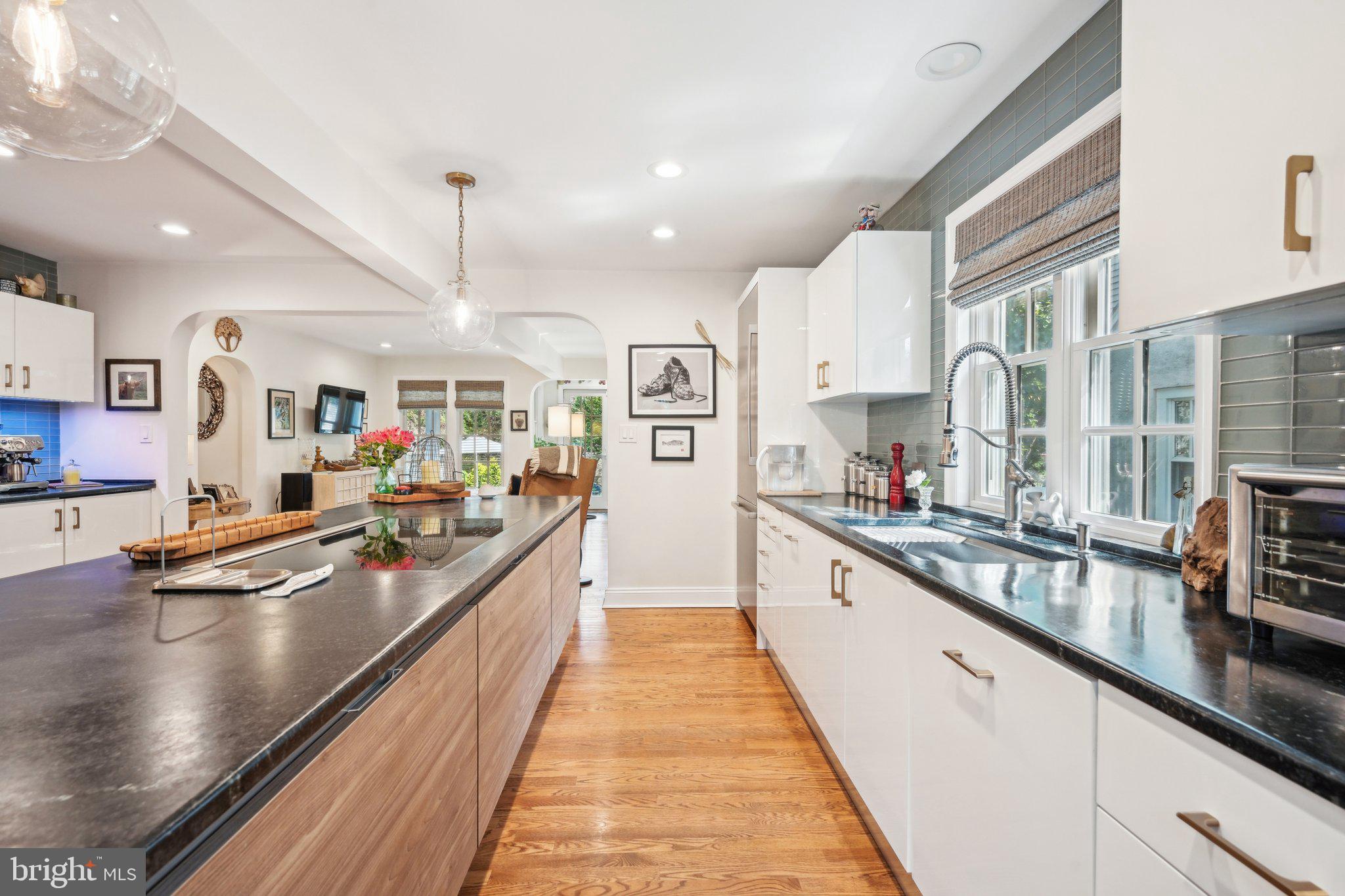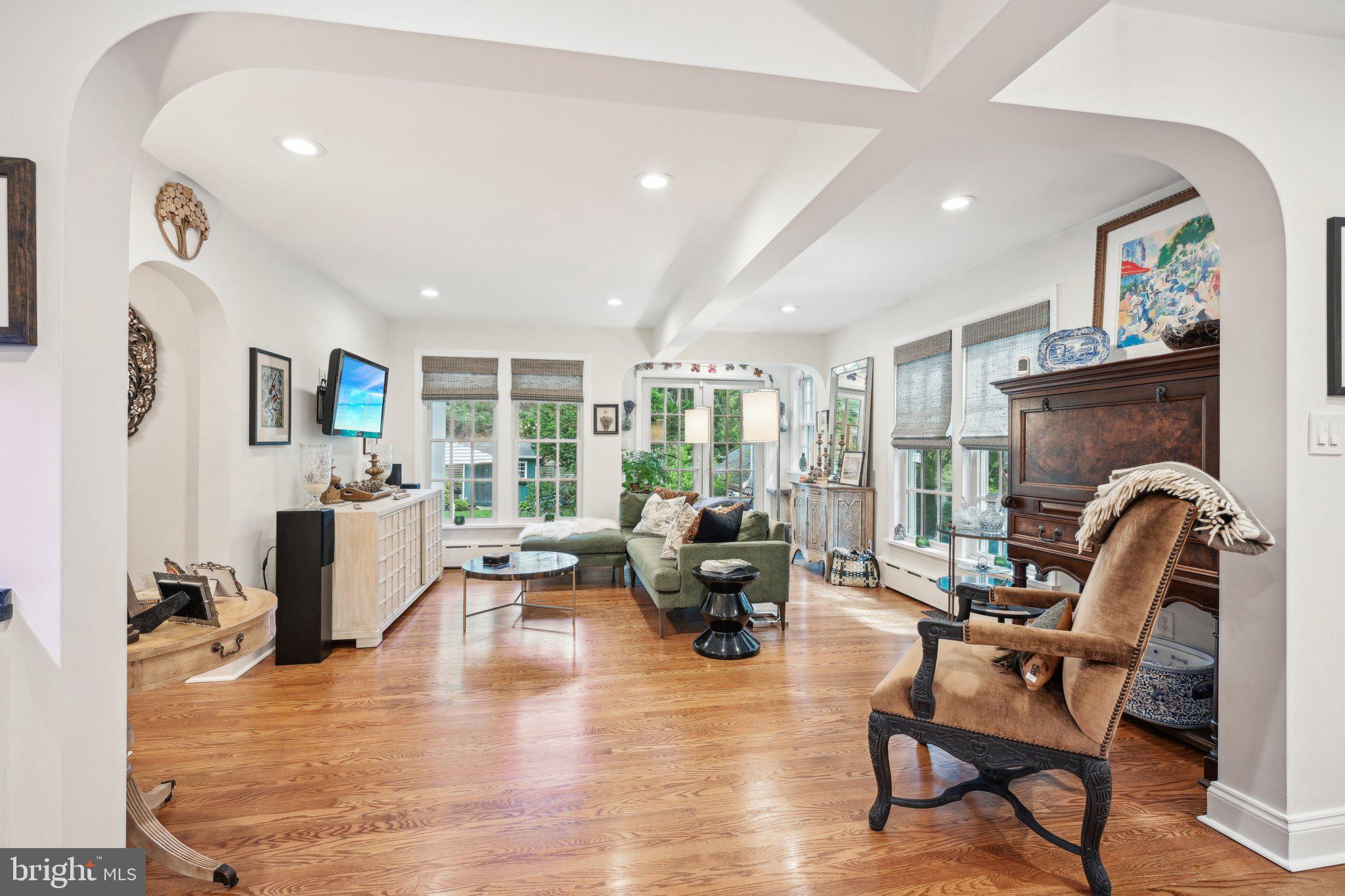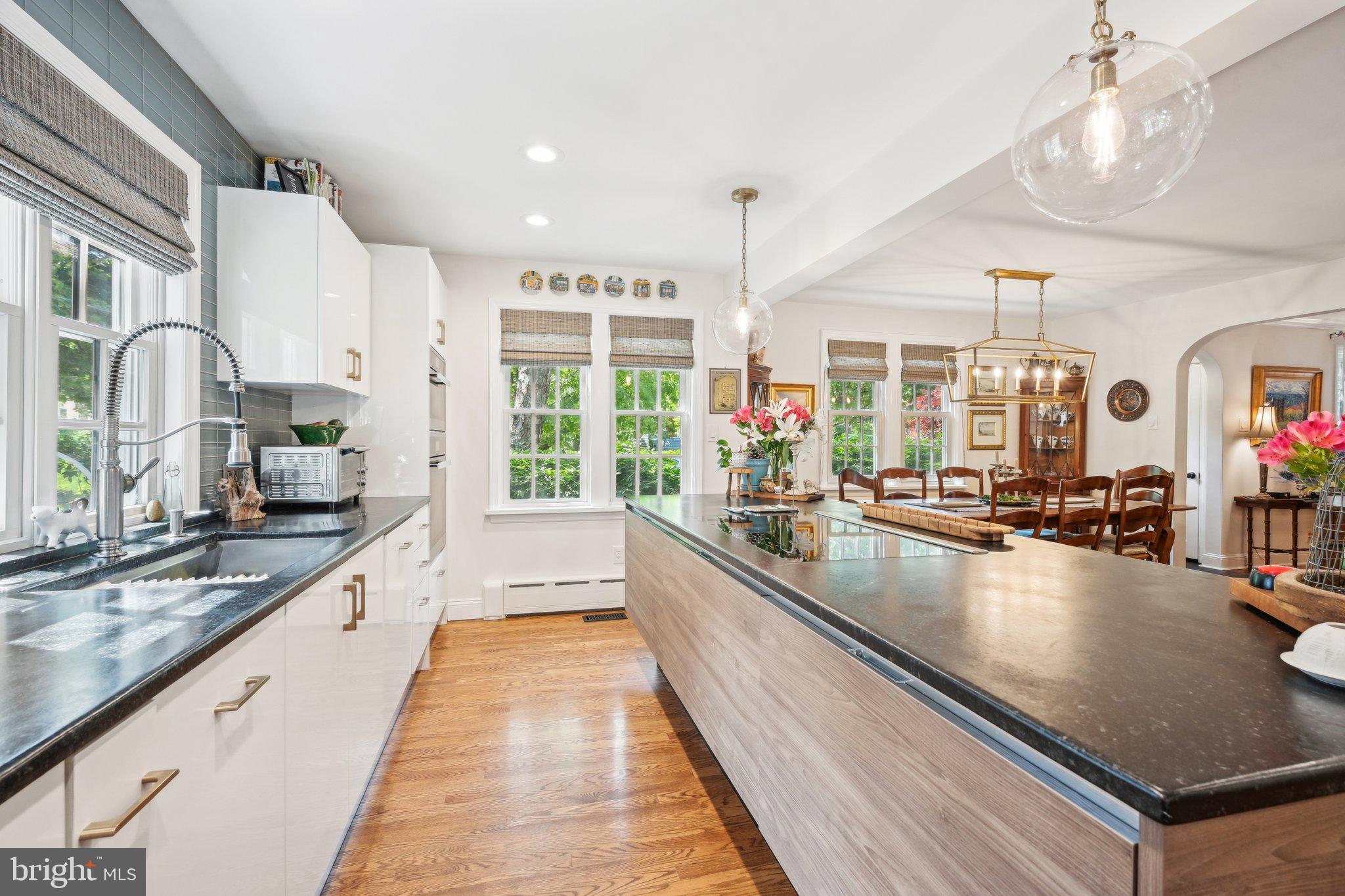 Welcome to this stunning, completely updated home, nestled on a spacious quarter-acre lot in the highly-desirable Beechwood neighborhood of Havertown. From 2019 to 2020 no detail was overlooked as the entire property underwent a thoughtful renovation, blending classic charm with modern convenience. The delightful exterior invites you in with mature well-tended plantings and lovely flower gardens. As you approach the arched front door by the newly redone landing and steps, come inside to discover a warm and inviting home with refinished hardwood floors and new Anderson wood windows throughout. The beautiful living room features a newly renovated gas fireplace with custom built mantel and new stone, creating a charming focal point. Across the center hall find a bright full dining room which flows into an absolute dream of a kitchen where you'll find soapstone countertops, a spacious island with beautifully designed storage, Wolf induction cooktop, built-in Bosch refrigerator and Miele convection and steam ovens. The kitchen, which also offers a convenient nook for coffee making and more, opens to the spacious family room, perfect for relaxing and entertaining. From here, you are beckoned outside through a slate-tiled alcove and French doors leading to a cozy covered deck, where you can walk out to the patio and back yard if desired. The first floor includes a sunny bedroom with ample well-designed closet space, offering flexibility for those looking for a first floor bedroom or home office. On this floor also find a completely renovated gorgeous tile hall bathroom with walk-in shower. Upstairs are redone hardwood floors, a second renovated tile bathroom, and 3 bedrooms. The main bedroom includes a new walk-in closet addition with a window. On the lower level, the finished basement has been completely redone including the staircase, providing additional living space and a nicely-sized half bath. On this level you'll also find the laundry room and easy access to the back yard through redone steps and a gate leading out. Once outside, you'll fall in love with the new flagstone patio, surrounded by garden beds, ample flat lawn space, and a skip laurel hedge and smart-looking newer fence providing privacy. The wooden shed offers convenient storage tucked away in a corner of the yard. Parking is no problem with the separate double garage which includes a second-story loft, offering additional storage and the potential for a creative space. The garage can be accessed through a side door from a landscaped breezeway with a splendid custom arched gate leading to the back yard. Additional upgrades include a new roof, new driveway and curb apron, completely redone HVAC and electric with a new electric panel, and new Smith and Noble custom window shades. This turn-key home, lovingly transformed by owners who planned to stay but are now moving to be closer to family, offers a comfortable, convenient, and stylish living experience in a vibrant neighborhood close to Linwood Park, Karakung Swim Club, schools, transit, restaurants and shopping. Don't miss this opportunity to see this beautiful home and call it your own!