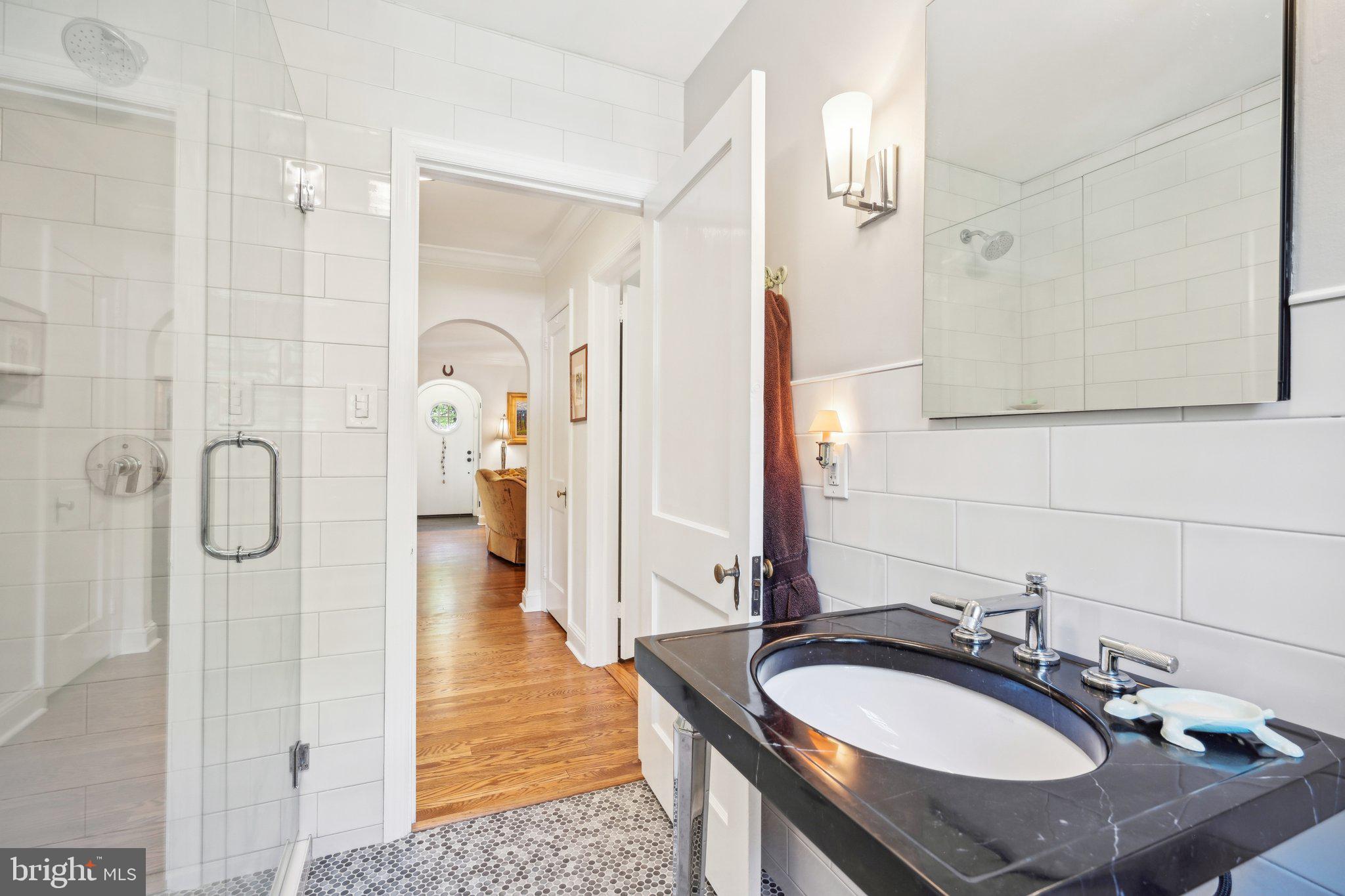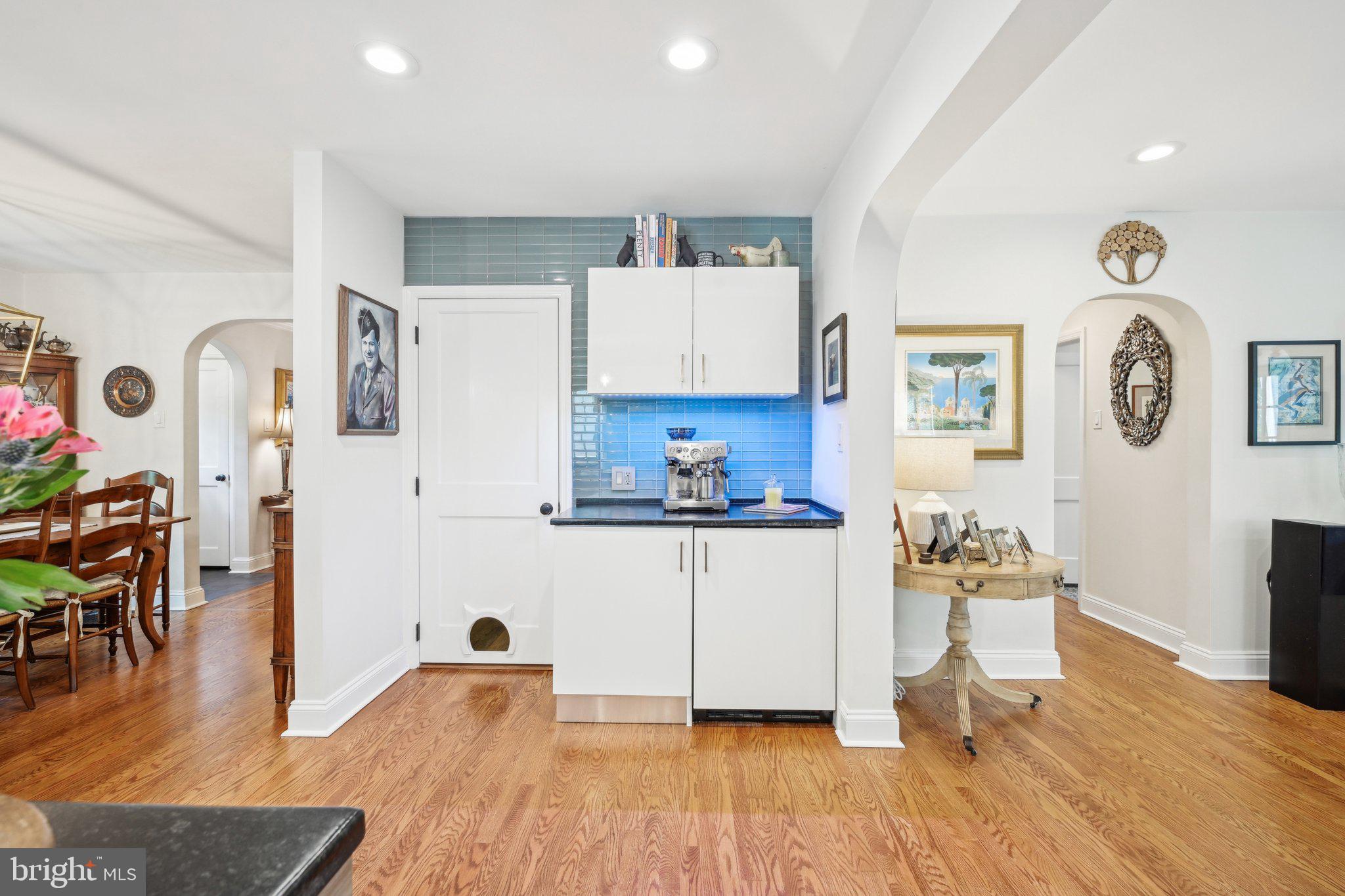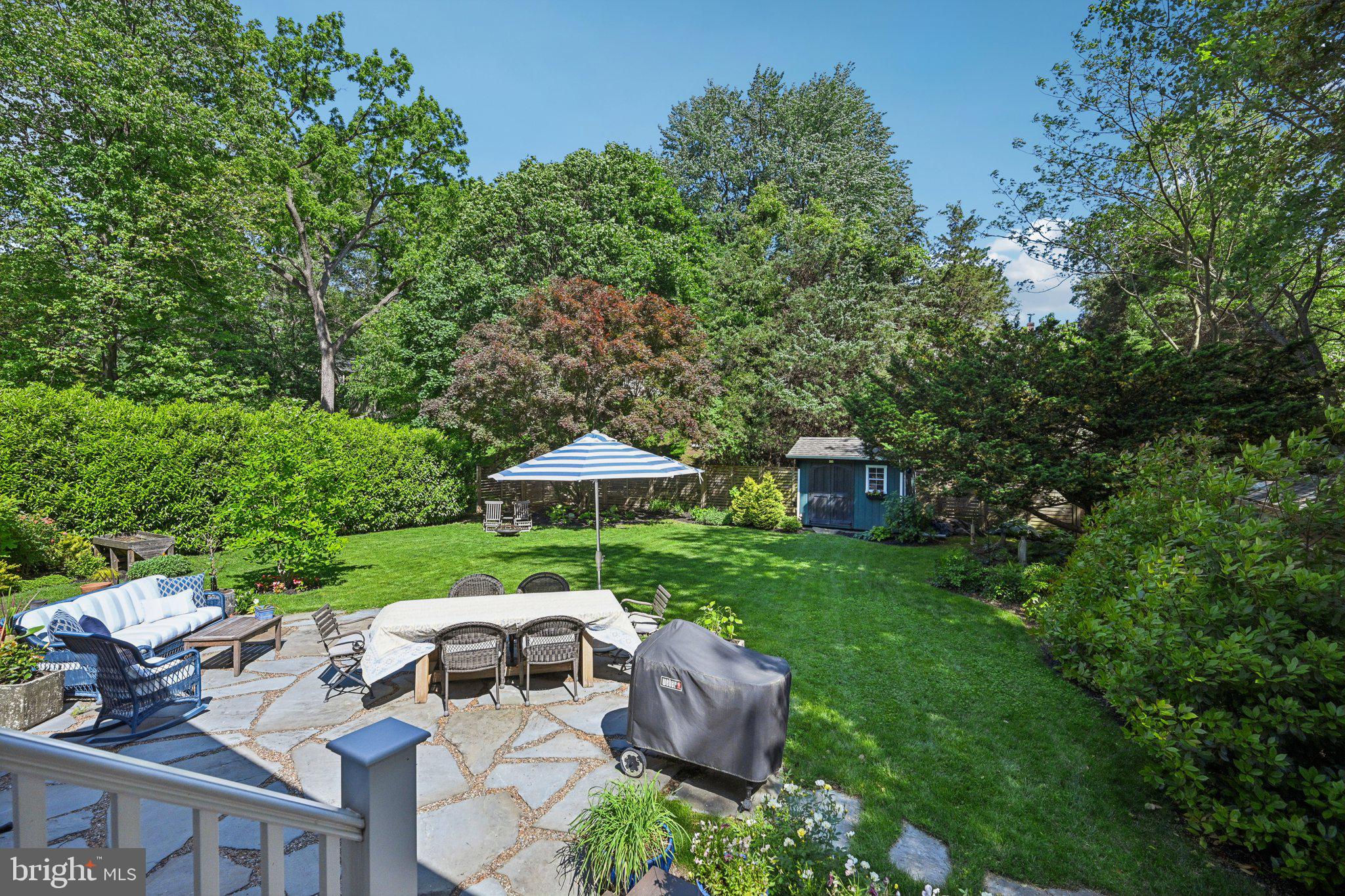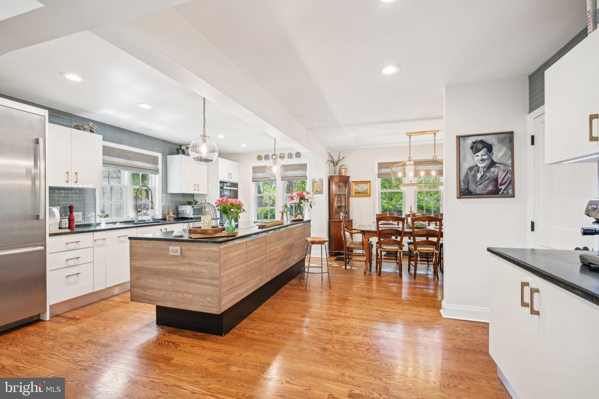 Welcome to this stunning, completely updated home, nestled on a spacious quarter-acre lot in the highly-desirable Beechwood neighborhood of Havertown. From 2019 to 2020 no detail was overlooked as the entire property underwent a thoughtful renovation, blending classic charm with modern convenience. The delightful exterior invites you in with mature well-tended plantings and lovely flower gardens. As you approach the arched front door by the newly redone landing and steps, come inside to discover a warm and inviting home with refinished hardwood floors and new Anderson wood windows throughout. The beautiful living room features a newly renovated gas fireplace with custom built mantel and new stone, creating a charming focal point. Across the center hall find a bright full dining room which flows into an absolute dream of a kitchen where you'll find soapstone countertops, a spacious island with beautifully designed storage, Wolf induction cooktop, built-in Bosch refrigerator and Miele convection and steam ovens. The kitchen, which also offers a convenient nook for coffee making and more, opens to the spacious family room, perfect for relaxing and entertaining. From here, you are beckoned outside through a slate-tiled alcove and French doors leading to a cozy covered deck, where you can walk out to the patio and back yard if desired. The first floor includes a sunny bedroom with ample well-designed closet space, offering flexibility for those looking for a first floor bedroom or home office. On this floor also find a completely renovated gorgeous tile hall bathroom with walk-in shower. Upstairs are redone hardwood floors, a second renovated tile bathroom, and 3 bedrooms. The main bedroom includes a new walk-in closet addition with a window. On the lower level, the finished basement has been completely redone including the staircase, providing additional living space and a nicely-sized half bath. On this level you'll also find the laundry room and easy access to the back yard through redone steps and a gate leading out. Once outside, you'll fall in love with the new flagstone patio, surrounded by garden beds, ample flat lawn space, and a skip laurel hedge and smart-looking newer fence providing privacy. The wooden shed offers convenient storage tucked away in a corner of the yard. Parking is no problem with the separate double garage which includes a second-story loft, offering additional storage and the potential for a creative space. The garage can be accessed through a side door from a landscaped breezeway with a splendid custom arched gate leading to the back yard. Additional upgrades include a new roof, new driveway and curb apron, completely redone HVAC and electric with a new electric panel, and new Smith and Noble custom window shades. This turn-key home, lovingly transformed by owners who planned to stay but are now moving to be closer to family, offers a comfortable, convenient, and stylish living experience in a vibrant neighborhood close to Linwood Park, Karakung Swim Club, schools, transit, restaurants and shopping. Don't miss this opportunity to see this beautiful home and call it your own!